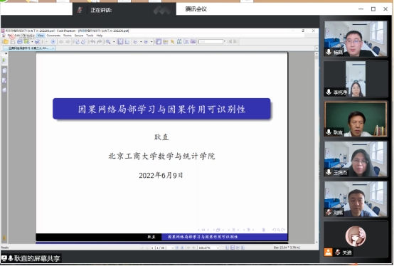 会后,耿直教授与参会师生进行互动,气氛活跃,热情高涨。本次线上报告会有助于全体数统学院师生深入了解“局部因果网络”相关内容,讨论有关于识别“混杂因素”和“中间变量”的相关问题。此次专题讲座内容丰富,拓宽视野,培养经济学基础深厚、创新能力突出、引领文明进步的数学与统计领军人才和未来大师。