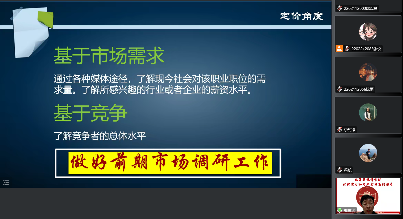 (通讯员:杨凯)2022年12月1日下午16:00,我院邀请长春启璞科技有限公司郑淑琼董事长做题为《应届毕业生应该如何找到理想的工作》的报告。本次报告由学院统计系主任杨凯主持,学院副院长李纯净、统计系支部书记袁晓惠,以及统计系胡茜等青年教师以及2020级、2019级本科生以及研究生参加了本次线上报告。