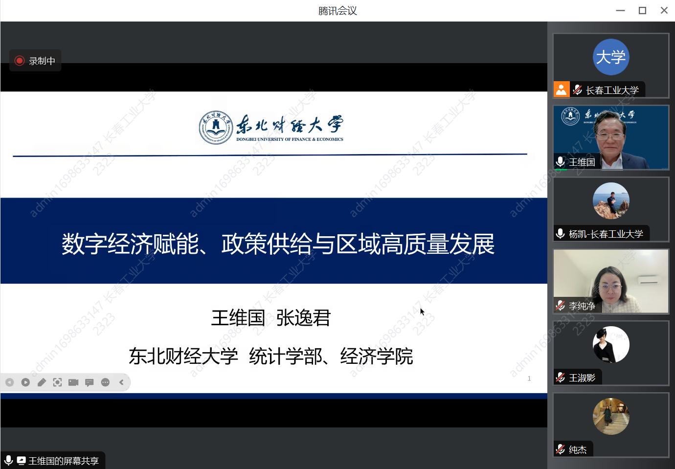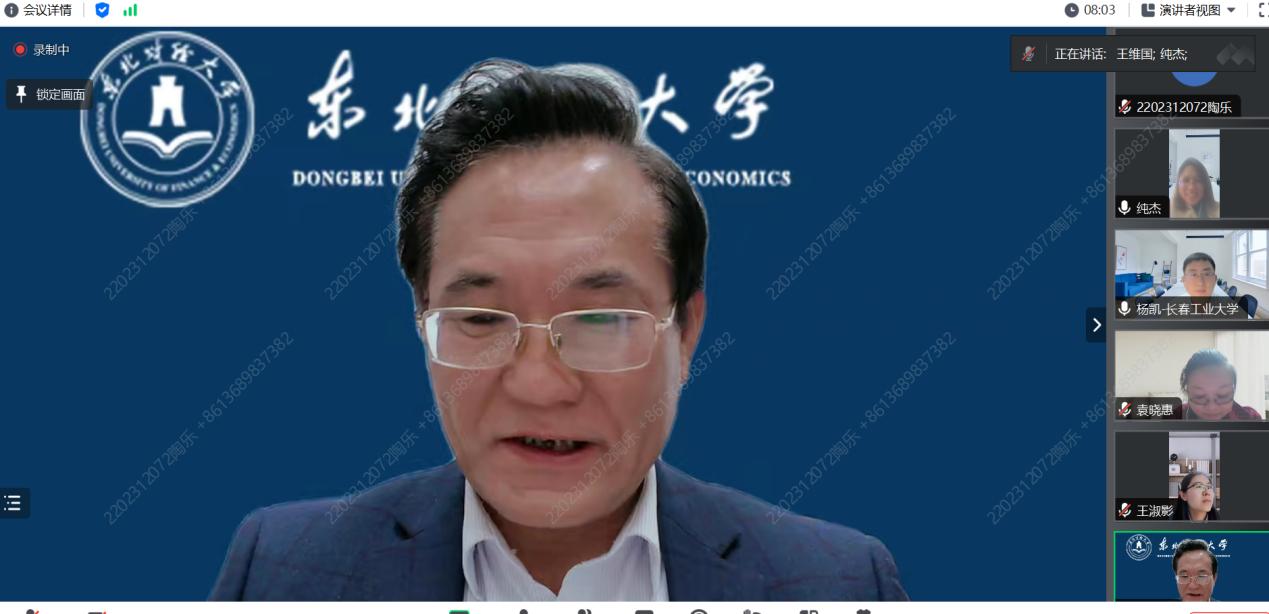 (通讯员:关迪)2023年11月6日下午19点30分,我院特邀东北财经大学经济学院王维国教授做线上学术报告,报告由必赢线路检测中心副院长杨凯副教授主持,学院院长王纯杰教授、学院副院长李纯净副教授、学院部分老师、全体研究生参加了本次线上学术报告会。