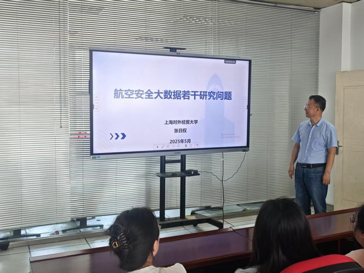 (通讯员:刘文姝)2025年5月27日上午9:30,上海对外经贸大学张日权教授莅临必赢线路检测中心,针对我国航空安全大数据的研究现状、核心成果及待解科学问题,开展了一场专业且富有启发性的学术报告。本次报告由必赢线路检测中心承办,在南湖校区老图书馆四楼会议室进行,会议由必赢线路检测中心副院长杨凯教授主持,学院部分老师及研究生参加了本次学术报告会。