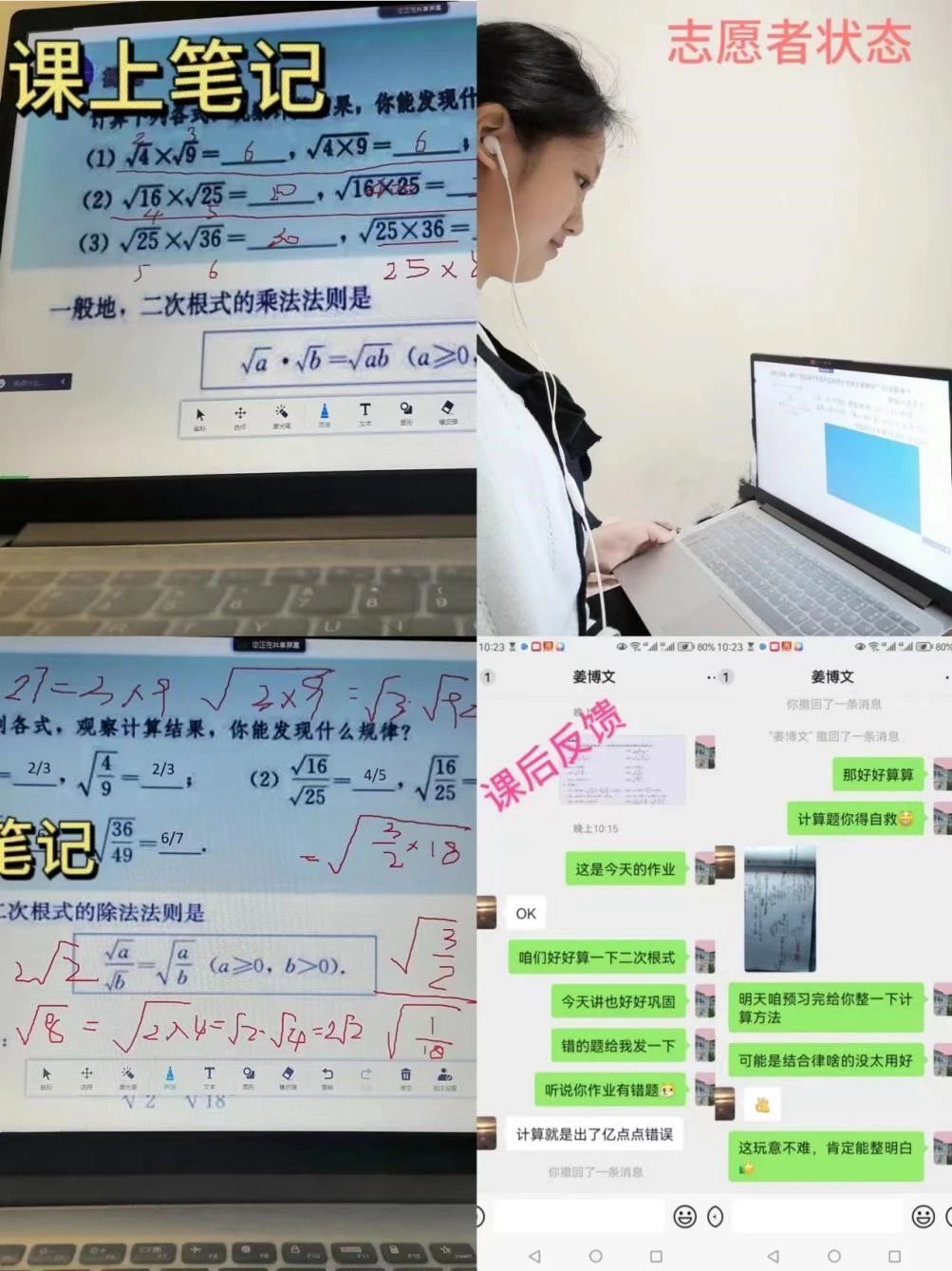 自活动开展以来,我院一批政治觉悟高、业务素质好的优秀青年积极主动报名参加,并在第一时间完成结对子。“学伴+”志愿者们针对服务对象的年级、学科、主要学业帮助诉求等问题,组建“一对一”、“多对一”的学业帮帮团,借助线上微信视频通话、QQ屏幕共享、腾讯会议等平台,通过线上或线下辅导等多种方式,及时解答服务对象的学业问题,用热情与真诚践行志愿精神,得到了学生家长和学生们的一致认可和好评。本期让我们一起了解必赢线路检测中心“学伴+”志愿者们的伴学故事和心声。