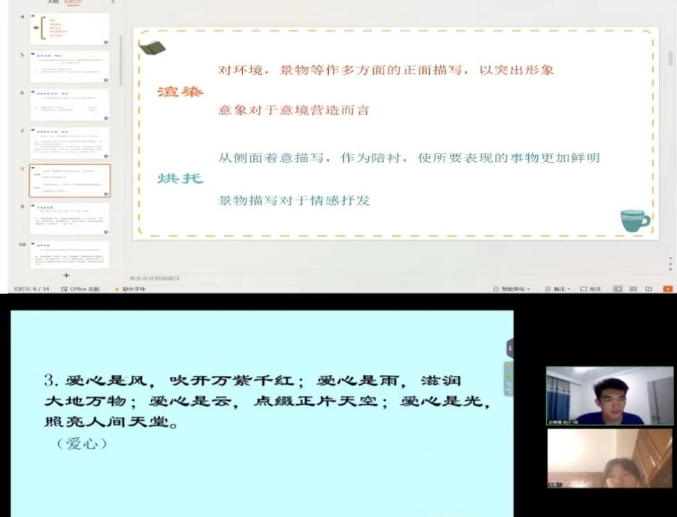 在本次“学伴+”活动中,主要负责讲解有关初中语文的知识,通过交流明确具体情况,对症下药,集中讲解语文作文的相关知识。从常见错误,到写作思路,再到专项归纳,最后再以历年中考作文题为例进行细致刨析,一点一点摸索初中作文写作的“门道”。