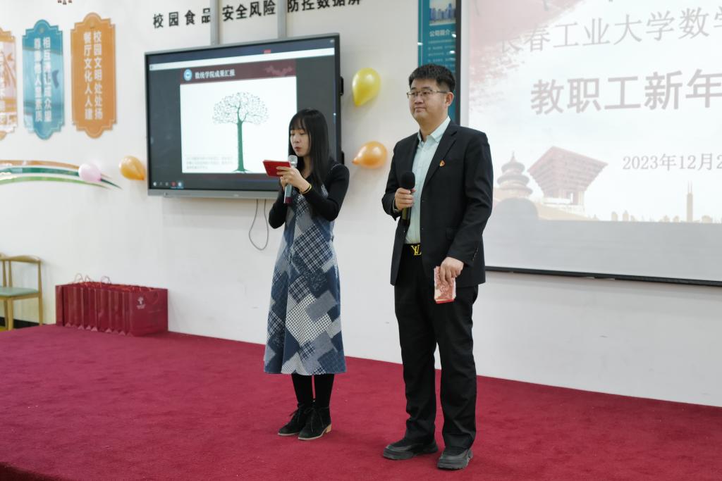 12月28日,必赢线路检测中心在南湖校区食堂隆重举办 “迎新年教职工联欢会”,学院全体教工齐聚一堂,共享欢乐时刻。联欢会由学院学生工作办公室辅导员白海洋;统计系教师蒋京京主持。