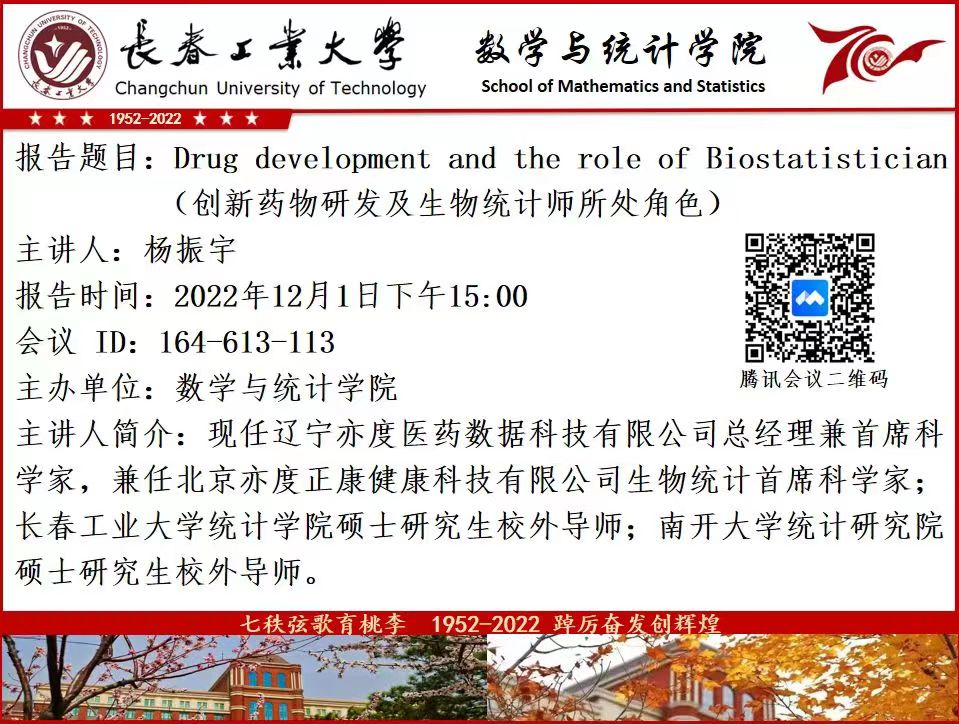报告题目:Drug development and the role of Biostatistician