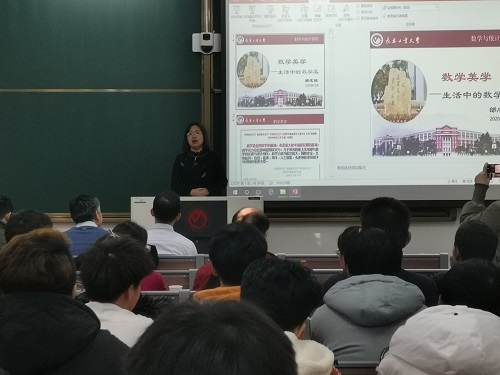 必赢线路检测中心团委讯(通讯员:柳笛 陈铭)为了让同学们深入领略数学之魅力,积极探索数学的奥秘,必赢线路检测中心邰志艳教授于2020年12月16日10:10在北湖东区主楼220教室为我院师生作以“数学美学——生活中的数学之美”为内容的学术报告,出席本次报告会的有校教育处副处长杜鹃、校美育中心副主任山川、学院党委书记朱宏伟、院长王纯杰、副院长刘铭,教师代表白琪峰、张建影、黎海彤老师及2019级和2020级全体学生。