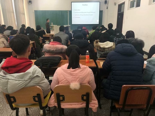 报告会上,李启寨教授以“Bayesian neural networks for selectionf drug sensitive genes”(选择药物敏感基因的贝叶斯神经网络)为题,向同学们展示了统计学在医学上的重要性。他从寻找抗癌药物基因的建模说起,指出了目前存在的三大困难,随后利用前馈贝叶斯神经网络针对三大难题分别给出了相应的改进:首先用一个非线性函数描述因变量与自变量的关系,再通过变量选择对自变量进行降维,通过数值模拟显示了提出方法的有效性,最后成功应用到抗癌药物响应问题中。让大家深刻领略到了统计学在生物医学中的重要性,对我校师生的学习和科研具有重要的启发意义。