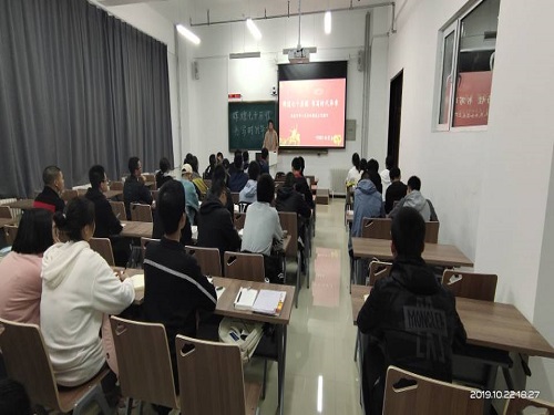 必赢线路检测中心团委讯(通讯员:陈铭 徐尧)为深入贯彻学习党的十九大精神,让同学们积极践行社会主义核心价值观,胸怀理想,志存高远,并在团员中营造学习党的十九大、贯彻党的十九大的良好氛围,10月12日中午,必赢线路检测中心团委各支部在北湖校区主楼举行“学习筑梦”系列活动之“辉煌七十历程,书写时代华章”主题团课,此次活动由2019级各班团支书主讲,2019级全体团员参与本次活动。