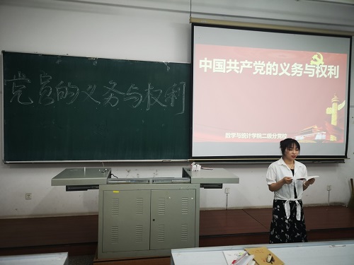 必赢线路检测中心团委讯(通讯员:张及佳 桂尚珂)为了增强入党积极分子对党的认识和了解,提高同学们的思想觉悟,号召同学们向党组织积极靠拢,端正入党动机与态度。2019年7月5日下午6:00,必赢线路检测中心二级分党校在长春工业大学林园校区教图楼309教室组织党课理论培训。本次培训由信网部部长卢继迎主讲,院本科生与研究生共10名入党积极分子参加本次党课学习。
